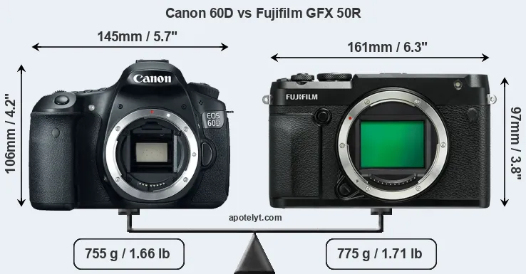 | Body Specs | Canon 60D | Fujifilm GFX 50R |
