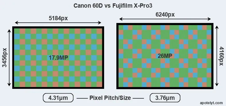 | Sensor Specs | Canon 60D | Fujifilm X-Pro3 |