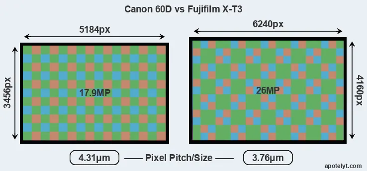 | Sensor Specs | Canon 60D | Fujifilm X-T3 |