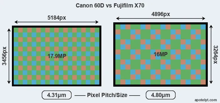 | Sensor Specs | Canon 60D | Fujifilm X70 |