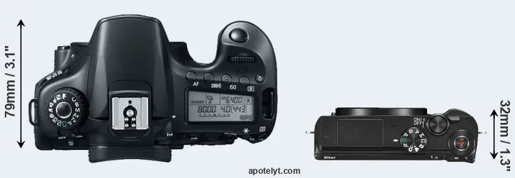 | 8. | Canon 80D | 139 mm | 105 mm | 79 mm | 730 g | 960 | Y | Feb 2016 | US$ 1 199 | ebay.com | |
