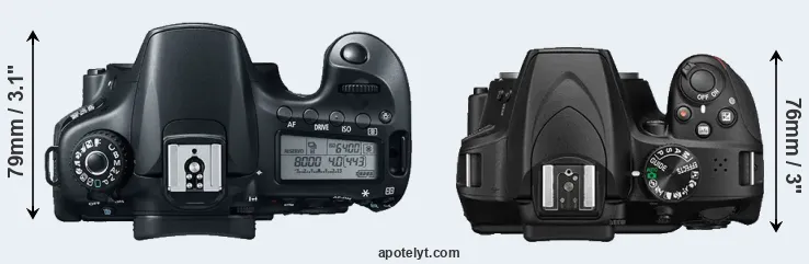 | 8. | Canon 80D | 139 mm | 105 mm | 79 mm | 730 g | 960 | Y | Feb 2016 | US$ 1 199 | ebay.com | |