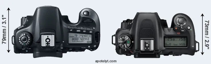 | 8. | Canon 80D | 139 mm | 105 mm | 79 mm | 730 g | 960 | Y | Feb 2016 | US$ 1 199 | ebay.com | |