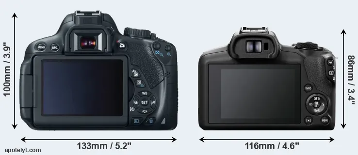 Size Canon 650D vs Canon R100