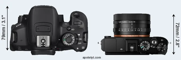 The above size and weight comparisons are to some extent incomplete and possibly misleading, as the RX1R II has a lens built in, whereas the 650D is an interchangeable lens camera that requires a separate lens. Attaching the latter will add extra weight and bulk to the setup. You can compare the optics available for the 650D and their specifications in the Canon EF Lens Catalog.