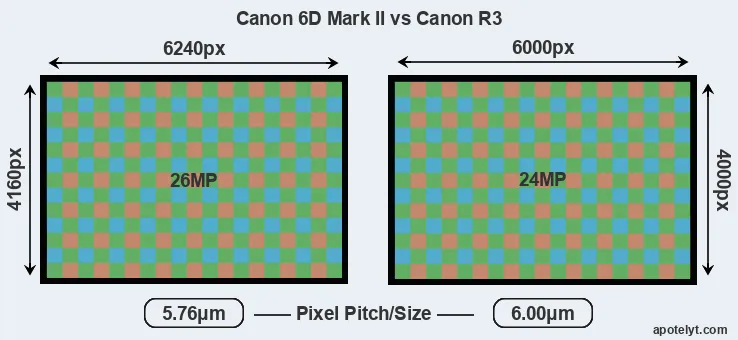 | Sensor Specs | Canon 6D Mark II | Canon R3 |