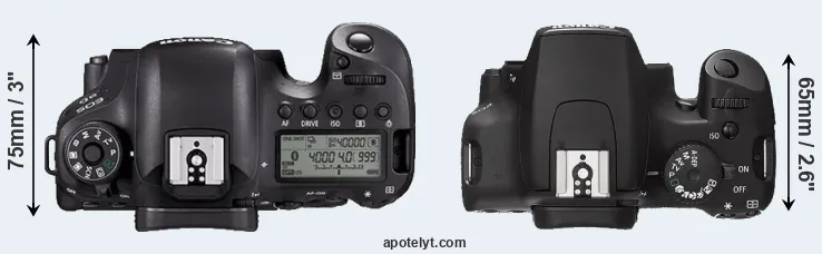 | 8. | Canon 80D | 139 mm | 105 mm | 79 mm | 730 g | 960 | Y | Feb 2016 | US$ 1 199 | ebay.com | |