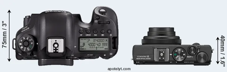 | 7. | Canon 80D | 139 mm | 105 mm | 79 mm | 730 g | 960 | Y | Feb 2016 | US$ 1 199 | ebay.com | |