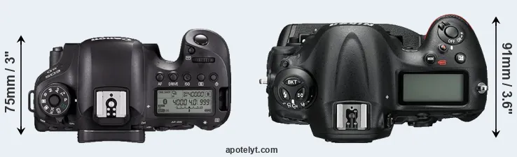 | 5. | Canon 5D Mark IV | 151 mm | 116 mm | 76 mm | 890 g | 900 | Y | Aug 2016 | US$ 3 499 | amazon.com | |