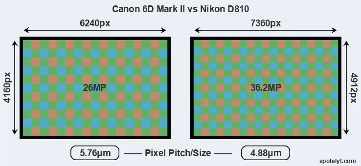 | Sensor Specs | Canon 6D Mark II | Nikon D810 |