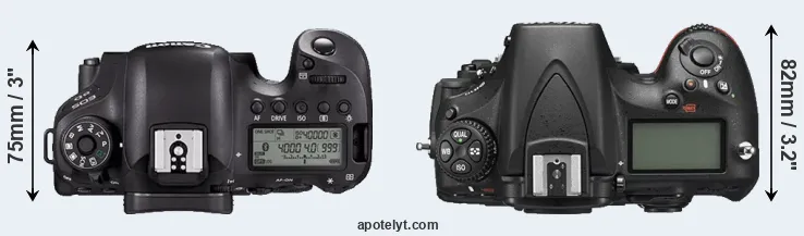 | 2. | Nikon D810 | 146 mm | 123 mm | 82 mm | 980 g | 1200 | Y | Jun 2014 | US$ 3 299 | ebay.com | |