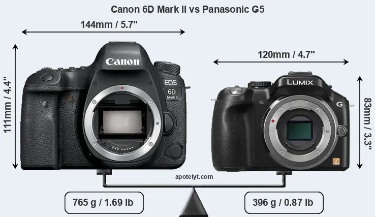 | Body Specs | Canon 6D Mark II | Panasonic G5 |