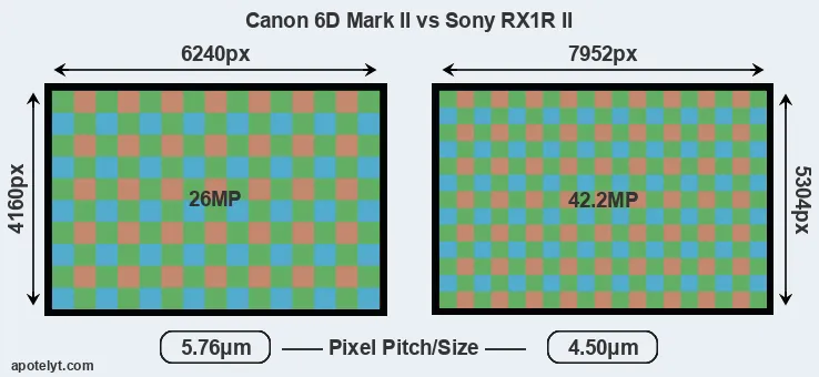 | Sensor Specs | Canon 6D Mark II | Sony RX1R II |