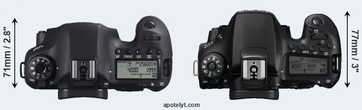 | 8. | Canon 6D Mark II | 144 mm | 111 mm | 75 mm | 765 g | 1200 | Y | Jun 2017 | US$ 1 999 | amazon.com | |