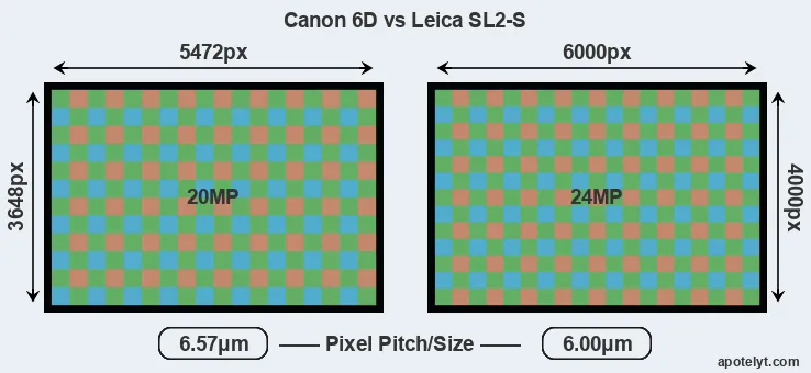 | Sensor Specs | Canon 6D | Leica SL2-S |