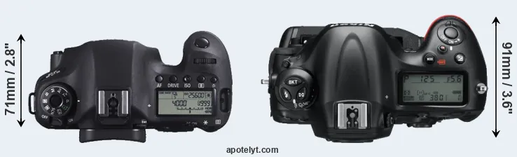 | 6. | Canon 5D Mark IV | 151 mm | 116 mm | 76 mm | 890 g | 900 | Y | Aug 2016 | US$ 3 499 | amazon.com | |