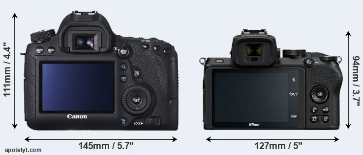 Going beyond this snapshot of core features and characteristics, what are the differences between the Canon EOS 6D and the Nikon Z50? Which one should you buy? Read on to find out how these two cameras compare with respect to their body size, their imaging sensors, their shooting features, their input-output connections, and their reception by expert reviewers.