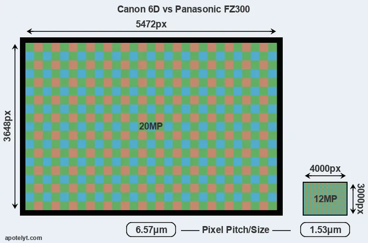 | Sensor Specs | Canon 6D | Panasonic FZ300 |