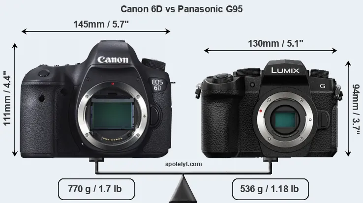 Going beyond this snapshot of core features and characteristics, what are the differences between the Canon EOS 6D and the Panasonic Lumix DC-G95? Which one should you buy? Read on to find out how these two cameras compare with respect to their body size, their imaging sensors, their shooting features, their input-output connections, and their reception by expert reviewers.