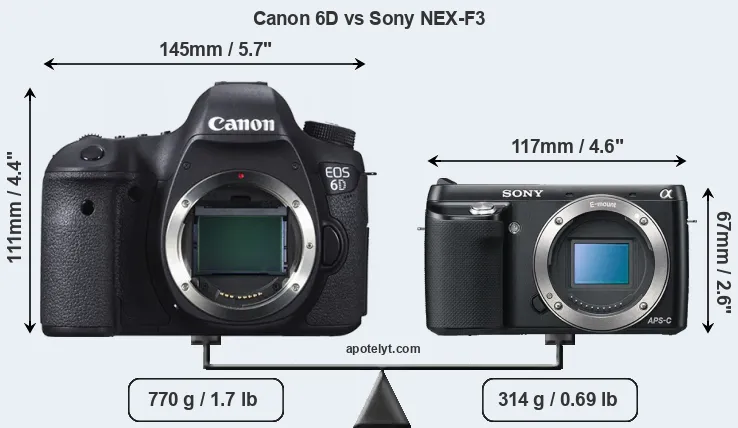| Body Specs | Canon 6D | Sony NEX-F3 |