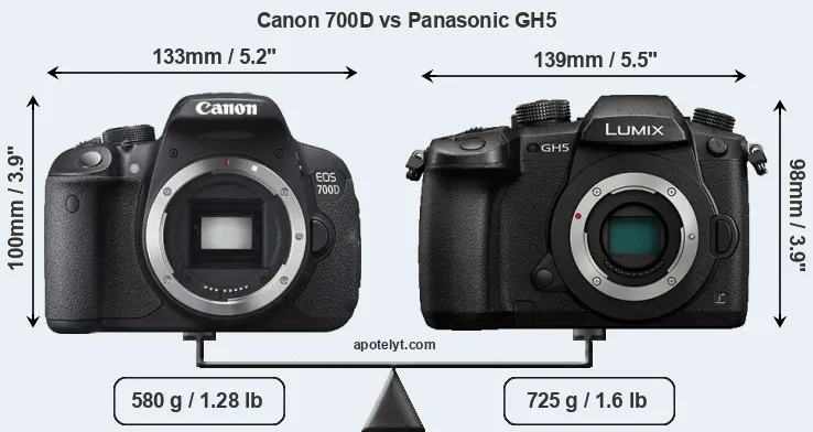 | Body Specs | Canon 700D | Panasonic GH5 |