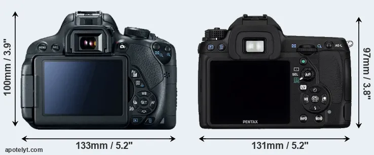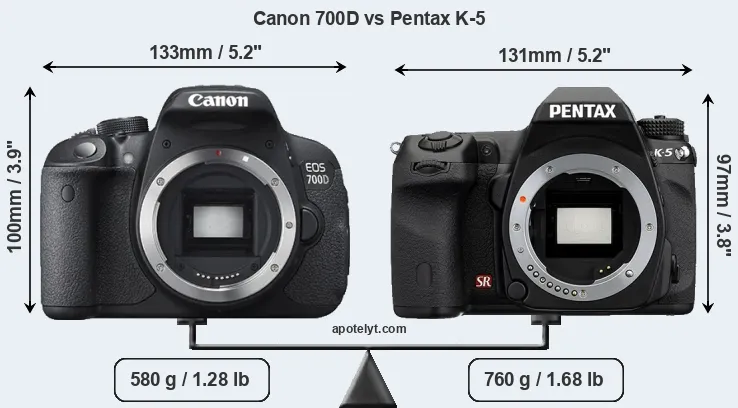 Size Canon 700D vs Pentax K-5