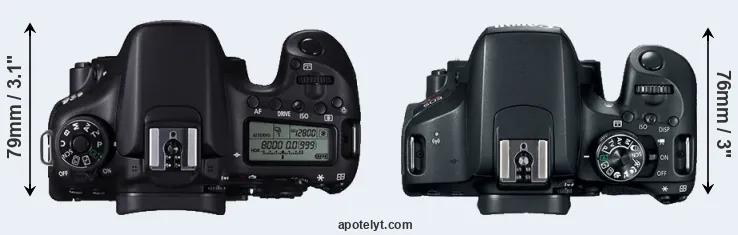 | 9. | Canon 80D | 139 mm | 105 mm | 79 mm | 730 g | 960 | Y | Feb 2016 | US$ 1 199 | ebay.com | |