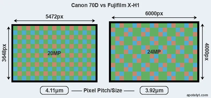 | Sensor Specs | Canon 70D | Fujifilm X-H1 |
