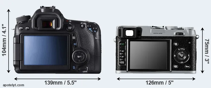 If the front view area (width x height) of the cameras is taken as an aggregate measure of their size, the Fujifilm X100 is considerably smaller (35 percent) than the Canon 70D. It is worth mentioning in this context that the 70D is splash and dust resistant, while the X100 does not feature any corresponding weather-sealing.