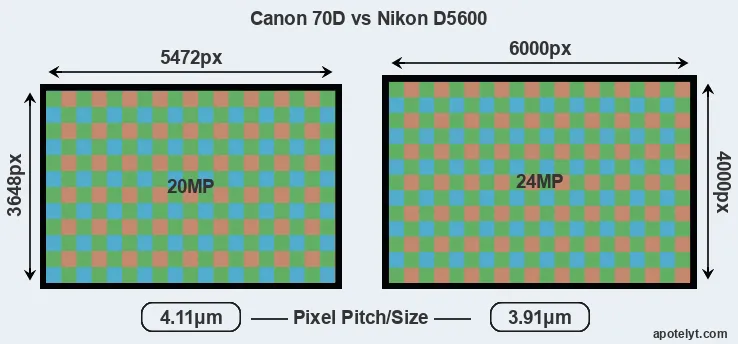 | Sensor Specs | Canon 70D | Nikon D5600 |