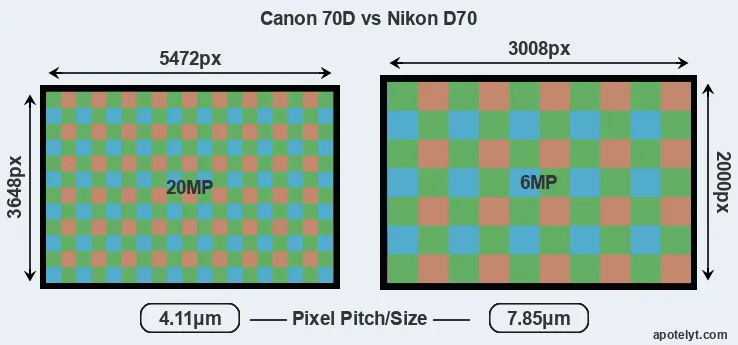 | Sensor Specs | Canon 70D | Nikon D70 |