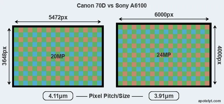 | Sensor Specs | Canon 70D | Sony A6100 |