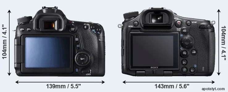 Going beyond this snapshot of core features and characteristics, what are the differences between the Canon EOS 70D and the Sony Alpha ALT-A99 II? Which one should you buy? Read on to find out how these two cameras compare with respect to their body size, their imaging sensors, their shooting features, their input-output connections, and their reception by expert reviewers.