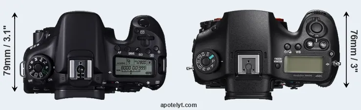 | 9. | Canon 80D | 139 mm | 105 mm | 79 mm | 730 g | 960 | Y | Feb 2016 | US$ 1 199 | ebay.com | |