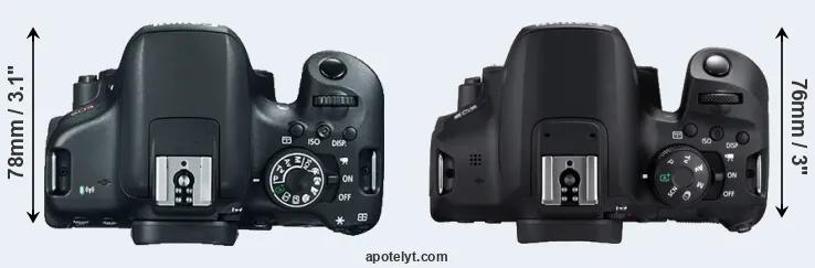 | 8. | Canon 800D | 131 mm | 100 mm | 76 mm | 532 g | 600 | n | Feb 2017 | US$ 749 | ebay.com | |