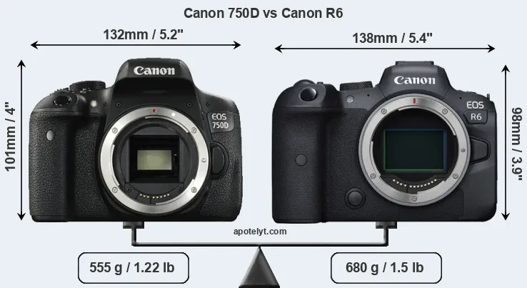 | Body Specs | Canon 750D | Canon R6 |