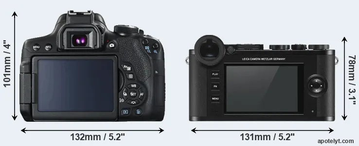 Going beyond this snapshot of core features and characteristics, what are the differences between the Canon EOS 750D and the Leica CL (Typ 7323)? Which one should you buy? Read on to find out how these two cameras compare with respect to their body size, their imaging sensors, their shooting features, their input-output connections, and their reception by expert reviewers.