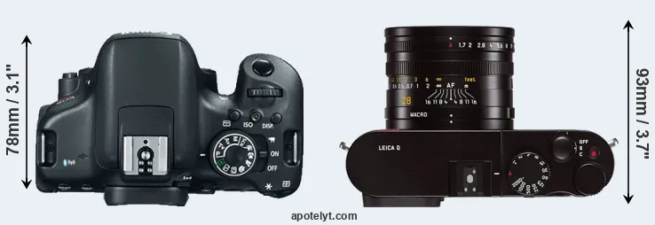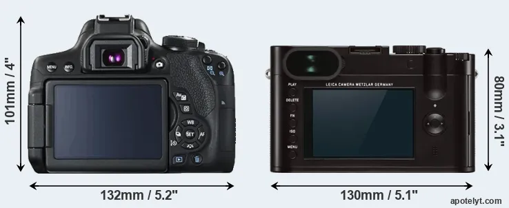Going beyond this snapshot of core features and characteristics, what are the differences between the Canon EOS 750D and the Leica Q (Typ 116)? Which one should you buy? Read on to find out how these two cameras compare with respect to their body size, their imaging sensors, their shooting features, their input-output connections, and their reception by expert reviewers.