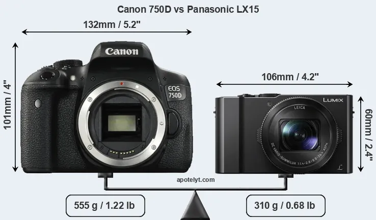 | Body Specs | Canon 750D | Panasonic LX15 |