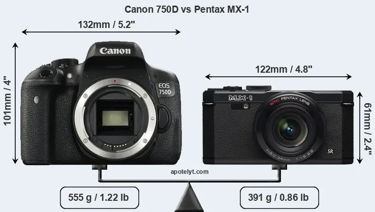 | Body Specs | Canon 750D | Pentax MX-1 |