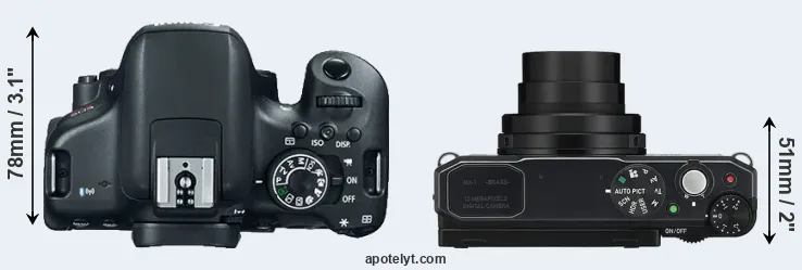 | 1. | Canon 750D | 132 mm | 101 mm | 78 mm | 555 g | 440 | n | Feb 2015 | US$ 749 | ebay.com | |