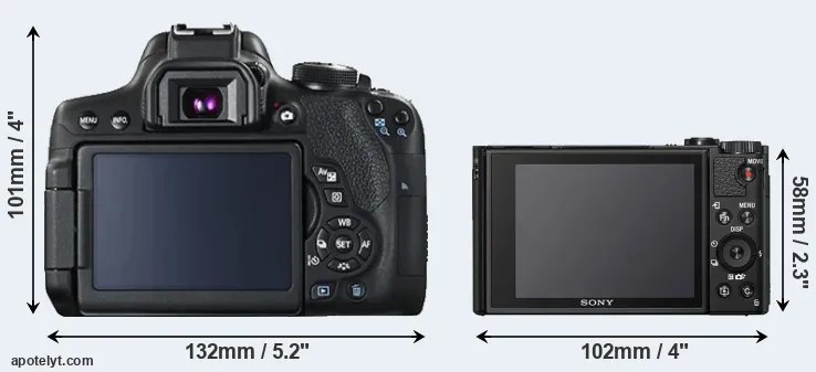 The above size and weight comparisons are to some extent incomplete and possibly misleading, as the HX99 has a lens built in, whereas the 750D is an interchangeable lens camera that requires a separate lens. Attaching the latter will add extra weight and bulk to the setup. You can compare the optics available for the 750D and their specifications in the Canon EF Lens Catalog.