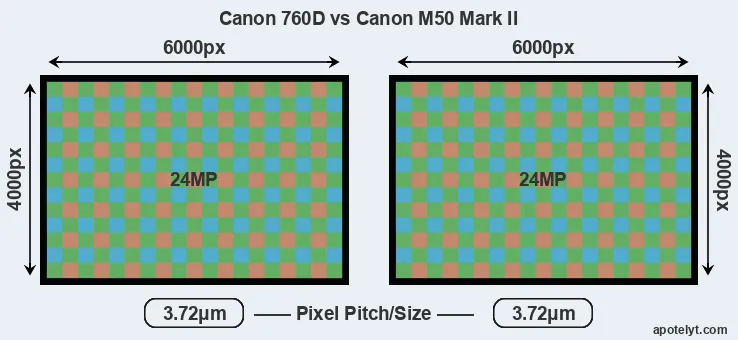 | Sensor Specs | Canon 760D | Canon M50 Mark II |