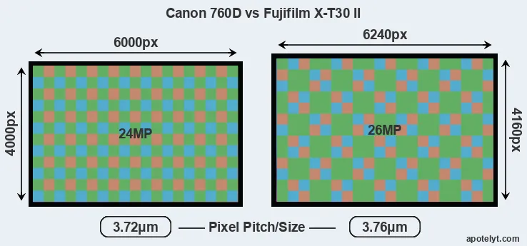 | Sensor Specs | Canon 760D | Fujifilm X-T30 II |