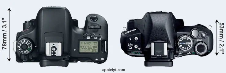 | 3. | Canon 77D | 131 mm | 100 mm | 76 mm | 540 g | 600 | n | Feb 2017 | US$ 899 | ebay.com | |
