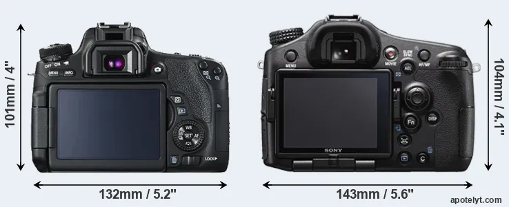 Going beyond this snapshot of core features and characteristics, what are the differences between the Canon EOS 760D and the Sony Alpha SLT-A77 II? Which one should you buy? Read on to find out how these two cameras compare with respect to their body size, their imaging sensors, their shooting features, their input-output connections, and their reception by expert reviewers.