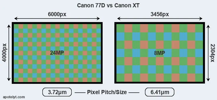 Canon 77D and Canon XT sensor measures