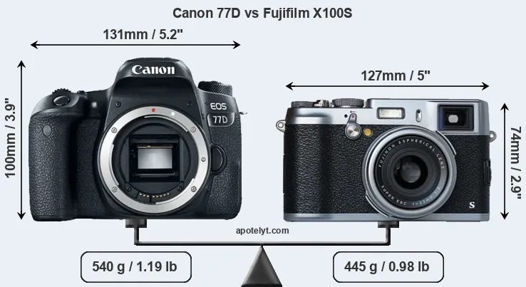 Specifications: Canon 77D vs Fujifilm X100S