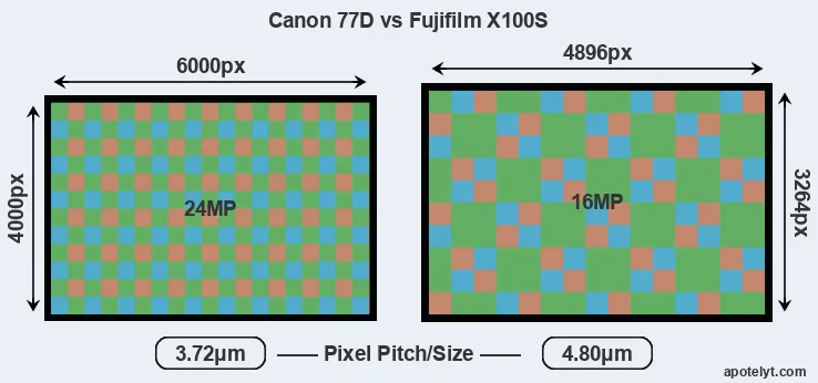 | Sensor Specs | Canon 77D | Fujifilm X100S |