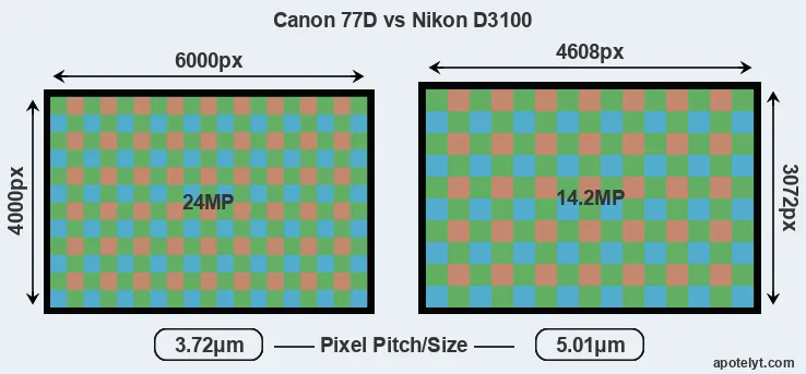 | Sensor Specs | Canon 77D | Nikon D3100 |
